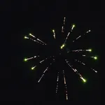 1. Красные звезды с пышными хвостами (кокос). 2. Зеленые звезды с пышными хвостами (кокос). 3. Множество серебряных ниспадающих нитей (парча). 4. Белая мерцающая сфера (пион). 5. Облако треска (трещащая хризантема).